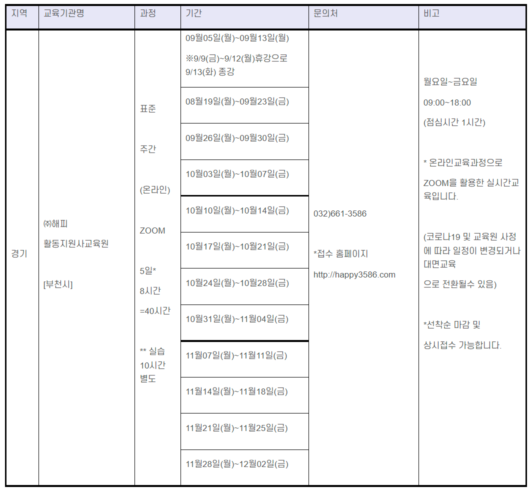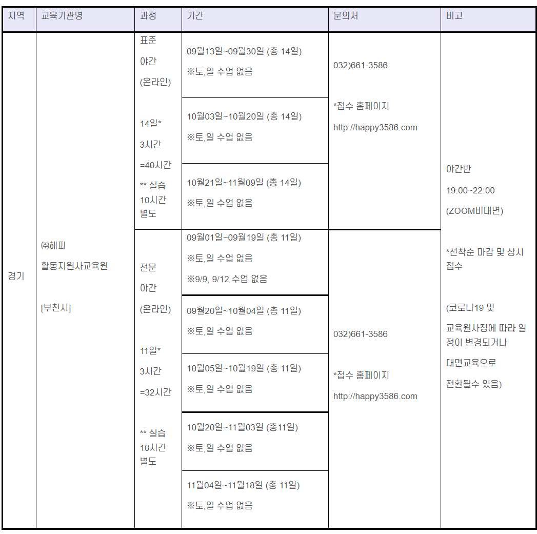 | 2022년 9월 경기 장애인활동지원사 양성 교육 일정 모음 (0) | 2022.08.30 |