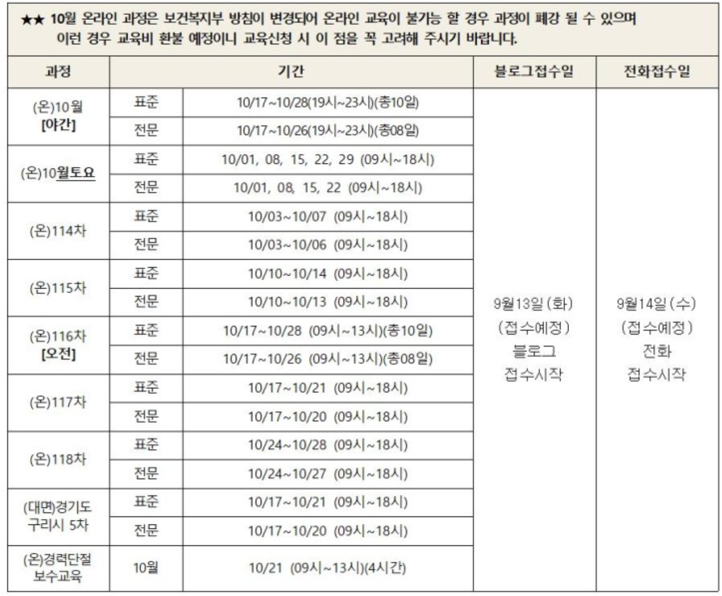 | 2022년 10월 서울 장애인활동지원사 양성 교육 일정 모음 (0) | 2022.09.28 |