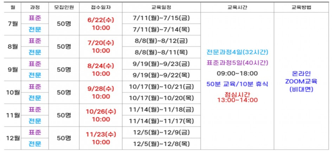 | 구분 | 교육기간 | 접수일 | 모집인원 | 비고 |