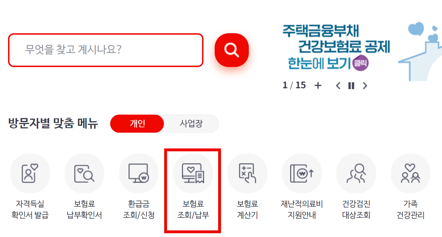 우선 국민건강보험 홈페이지를 방문해야 한다.