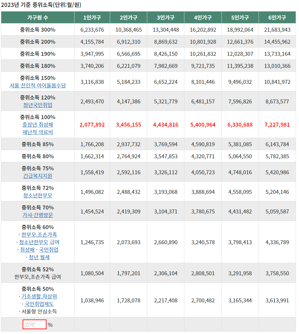 새해부터는 기준중위소득도 2023년 기준으로 적용된다.