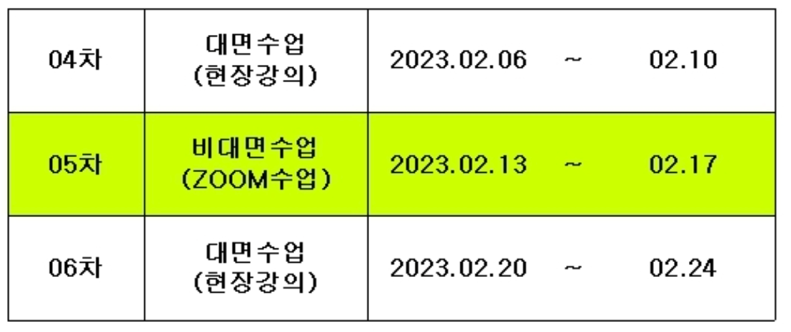 교육차수 6차 2023년 2월 13일~ 2월 17일 (비대면교육)