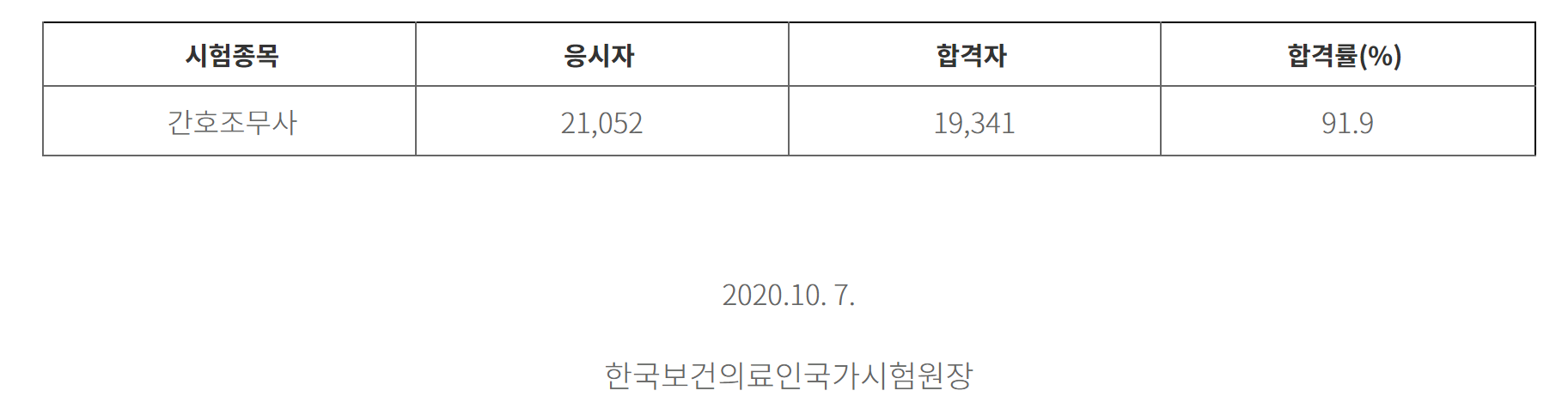 응시자 전체 21,052명 중 19,341명이 합격하여