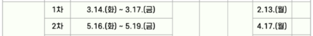 | 6회 | 2023년03월06일(월)~03월10일(금) 총 5일간 | 23년 02월 27일(월)~03월 03일 (금) 총 4일간 |