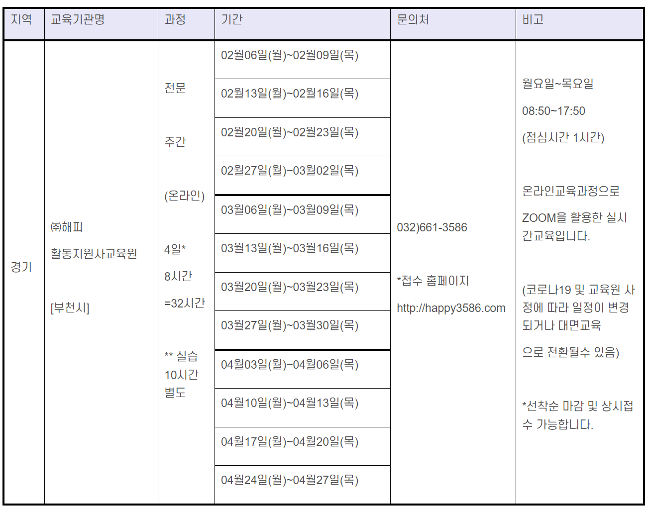 | 2023년 2월 경기 장애인활동지원사 양성 교육 일정 모음 (0) | 2023.01.30 |