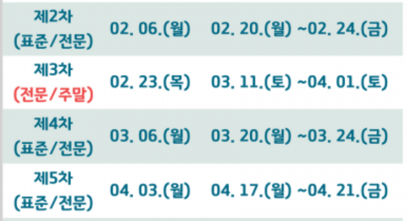표준+전문 | 2/6(월)~2/10(금) | 1/25(수) ~ 온라인 접수 |