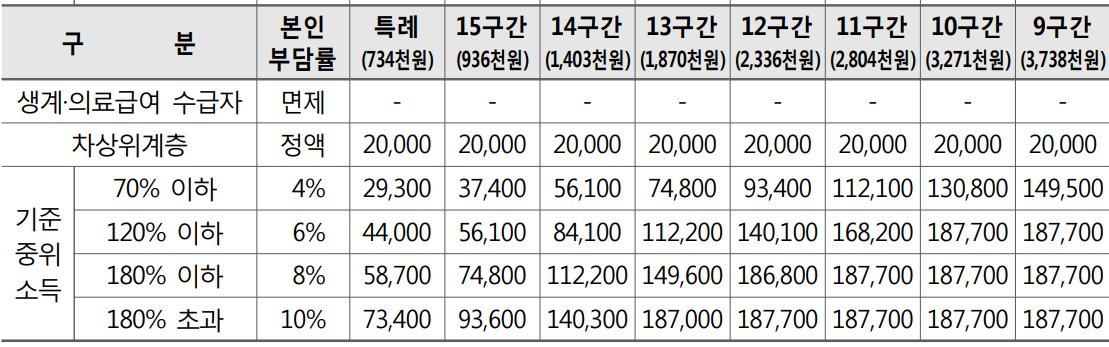 기준중위소득 50% 이상되는 차상위초과계층은 기준 중위소득에 따라서 본인부담금이 달라진다.
