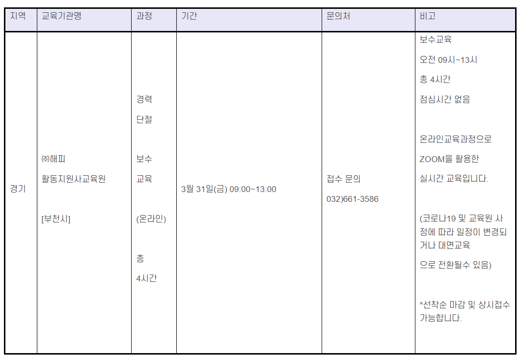 '자격증 정보 > 활동지원사 교육일정' 카테고리의 다른 글