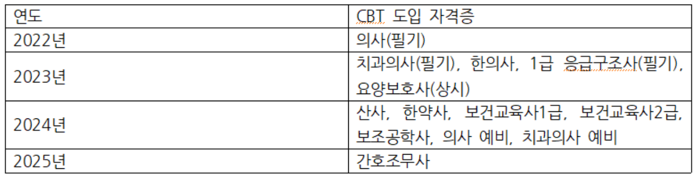 CBT시험 방식으로 전환되는 일정은 아래와 같다.