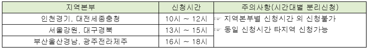 - 추가신청(5.16.): 본신청 이후 잔여교육장 일정에 한하여 인원 제한 없이 신청