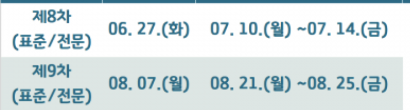 | 표준 | 7.10.(월)~7.14.(금) | 6.12.(월) |