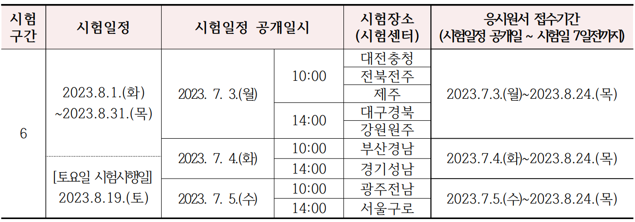 시험센터별 응시원서 접수일정을 분리하였으니, 아래의 시험 일정 공개 일시를 확인 후 접수해야 한다.