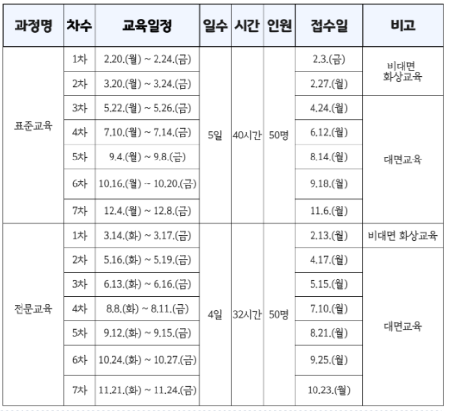 해당 교육 일정은 기관 홈페이지에서 발취했다.