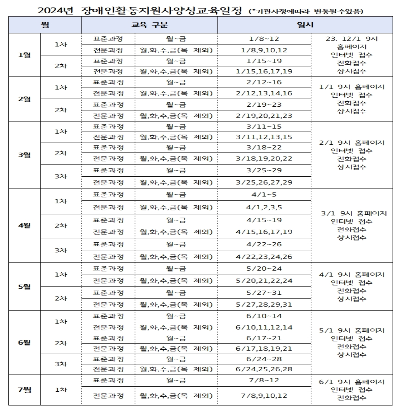 | 2024년 1월 서울 장애인활동지원사 양성 교육 일정 모음 (0) | 2023.12.26 |