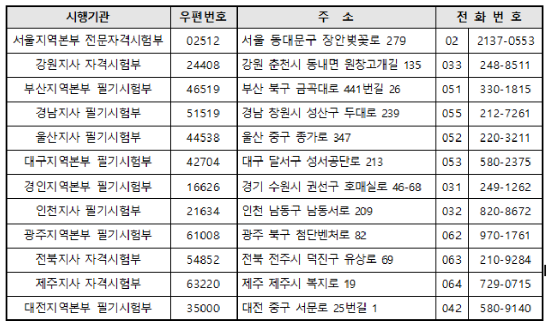 ※ 2024년 공단조직개편에 따라 변경되는 부서 및 연락처는 큐넷 홈페이지 참고(추후 공지)