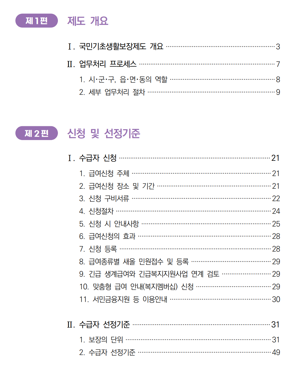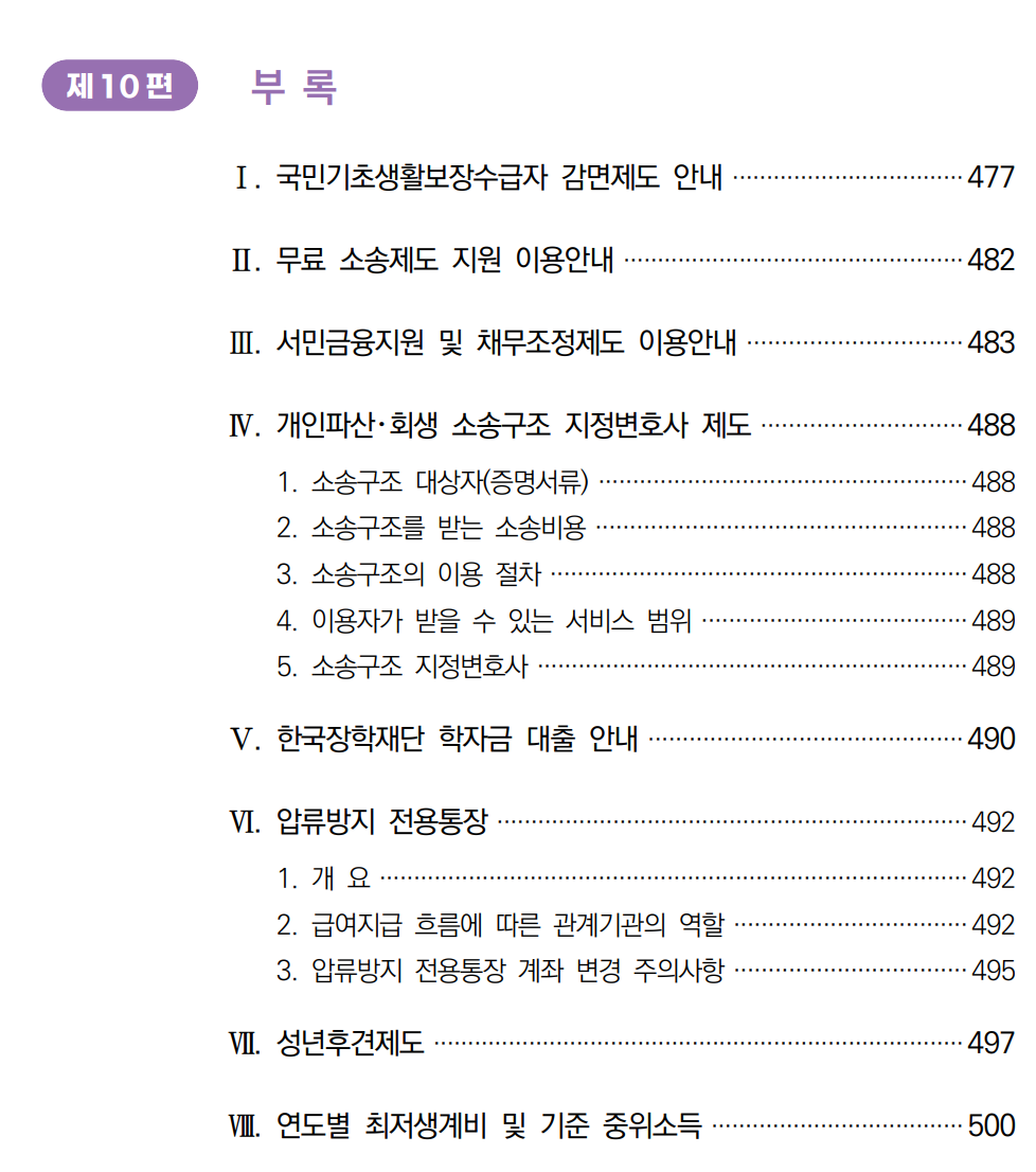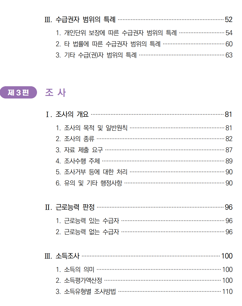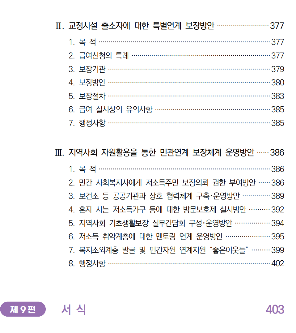 아래는 기초생활 수급자에 대한 내용을 담은 2024년 국민기초생활보장 사업안내의 목차와 다운로드 링크는 맨 하단에 있다.