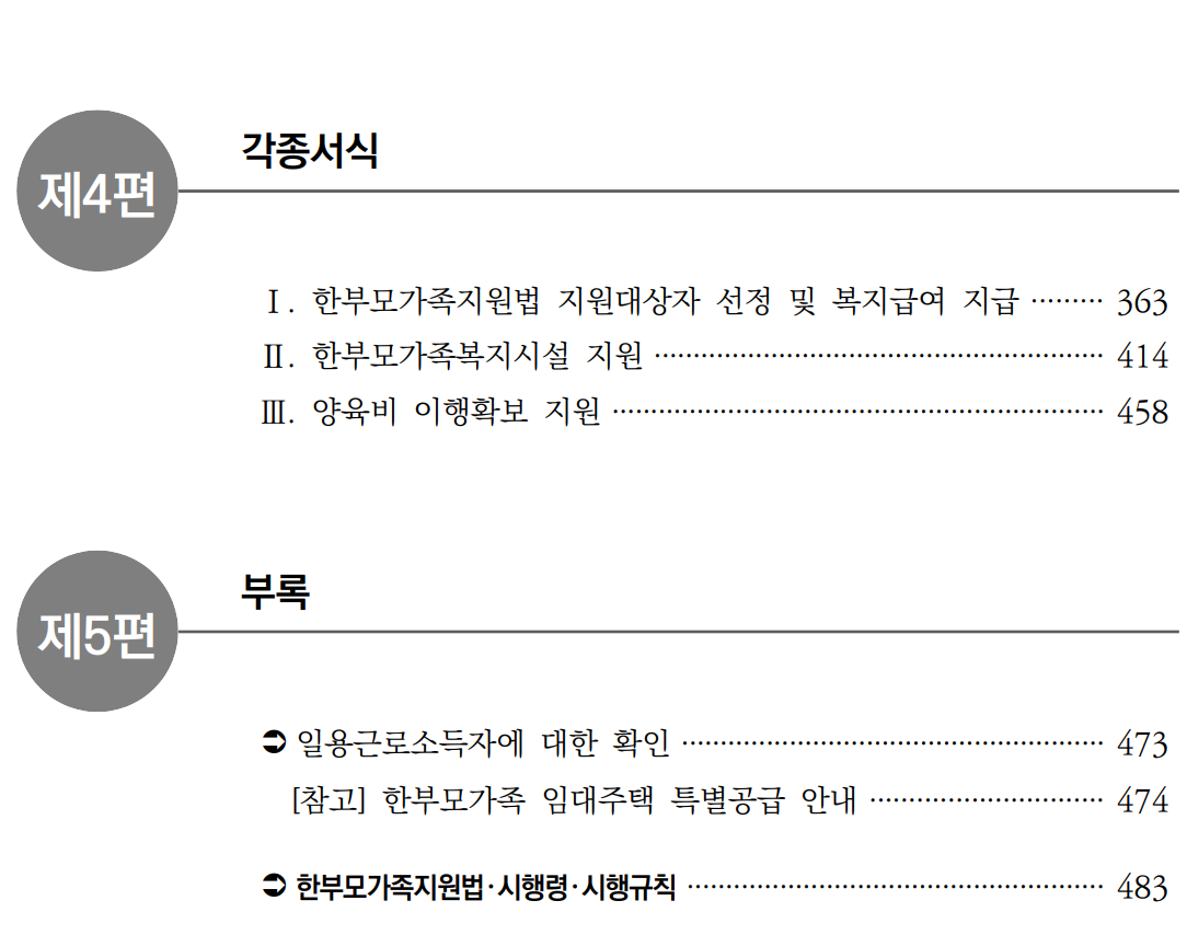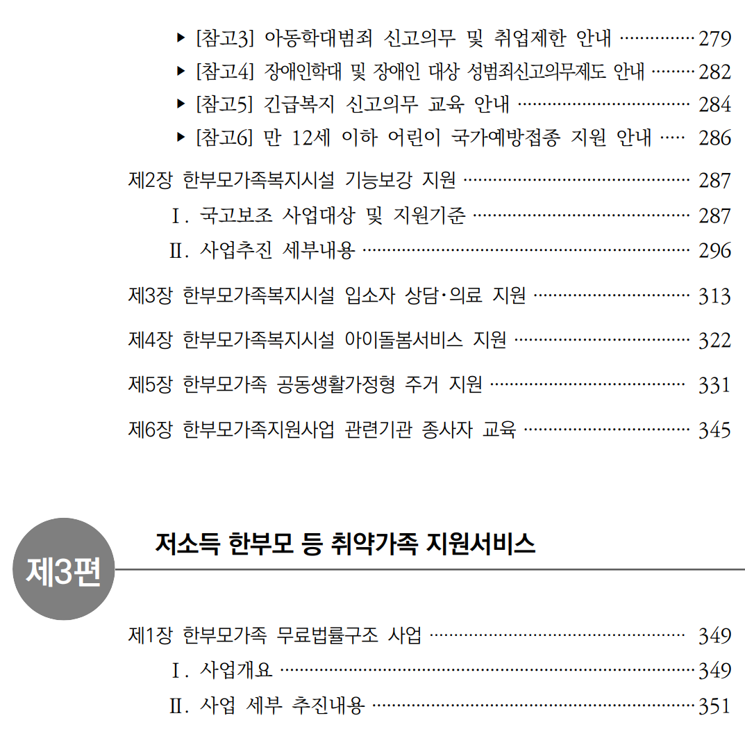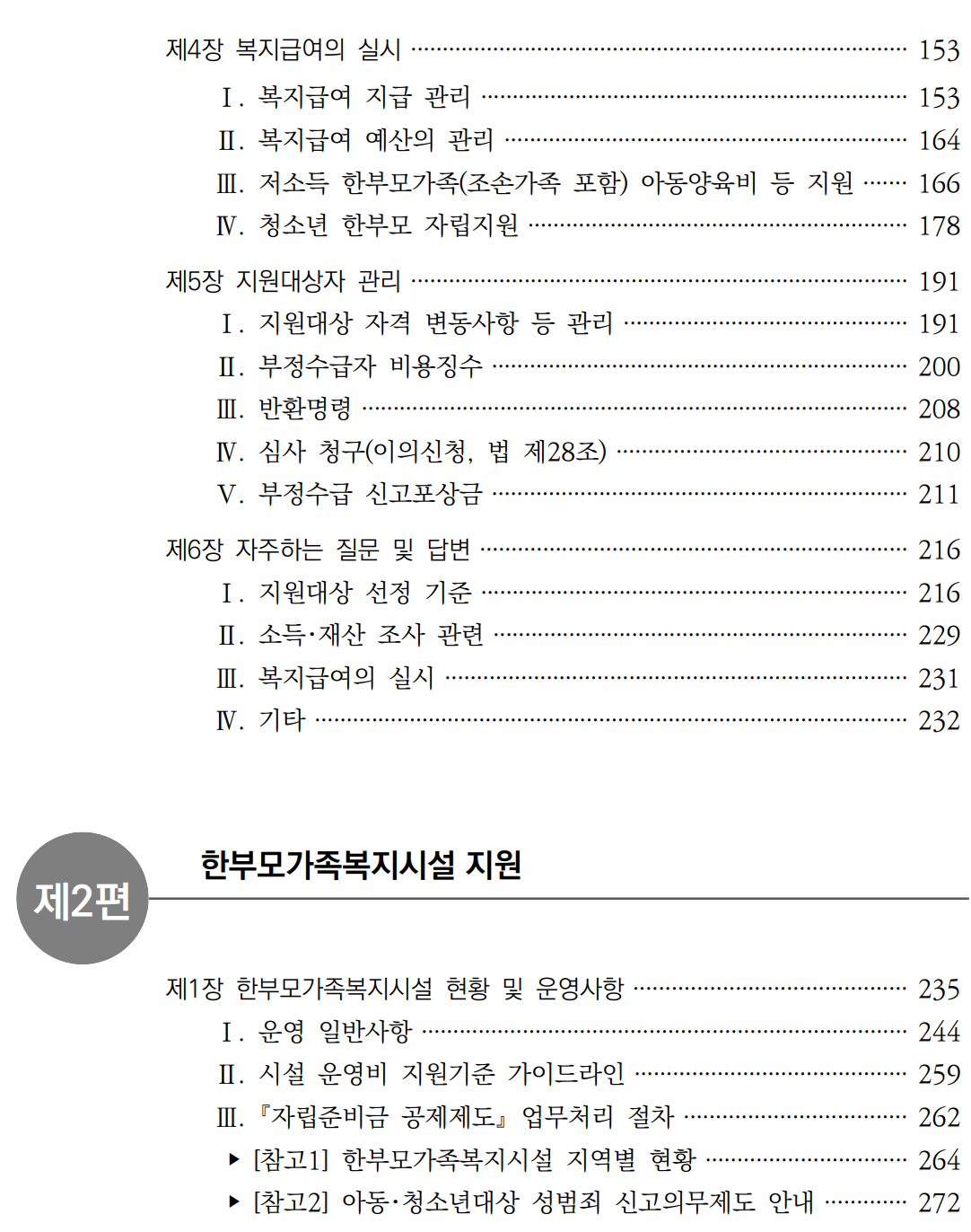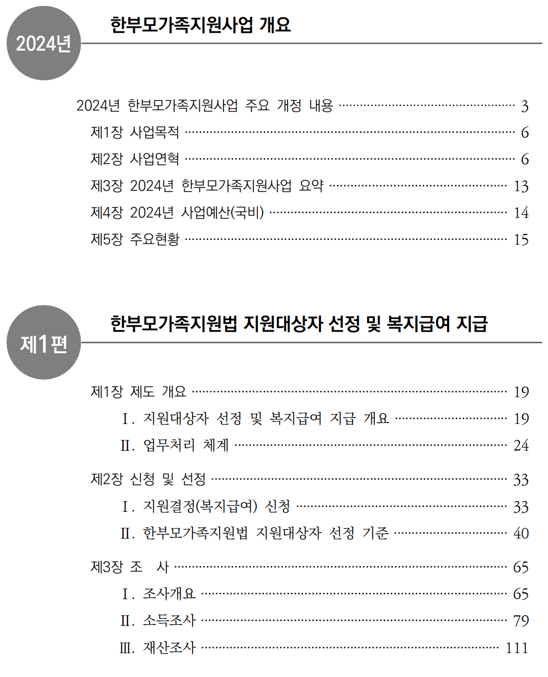 2024년 한부모가족지원사업 PDF 파일은 제1편은 한부모가족을 지원하는 법에 대한 세부사항과 지원 대상자의 선정, 복지급여의..