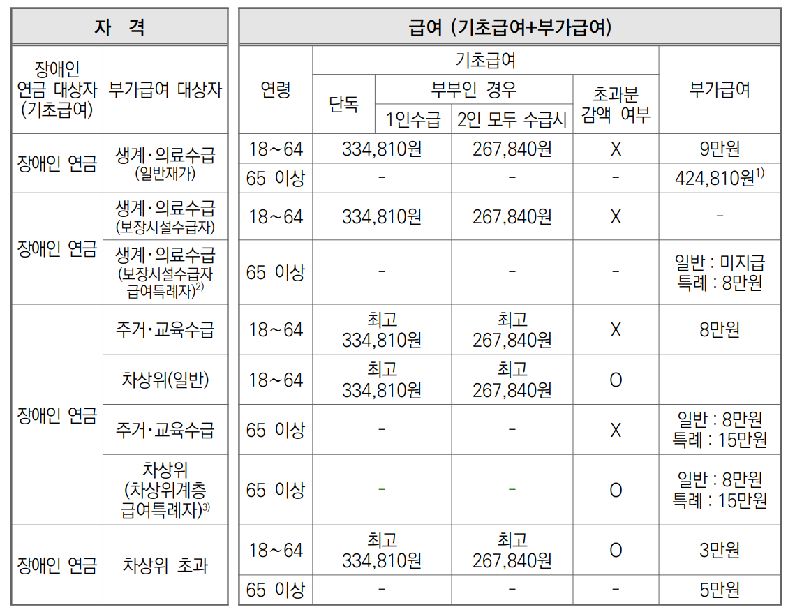 2024년 장애인연금 (기초급여 + 부가급여 )
