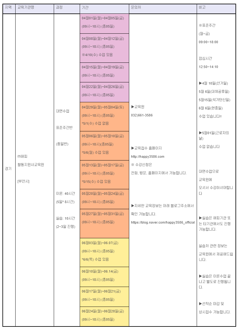 | 2024년 4월 서울 장애인활동지원사 양성 교육 일정 모음 (0) | 2024.03.25 |