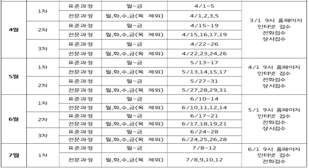| 3/11(월)~3/15(금) | 2/20(화) ~ 온라인 접수 |