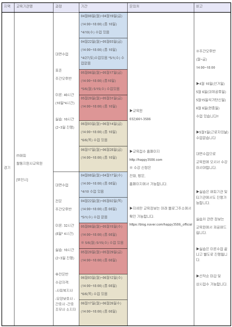 | 2024년 4월 전국 장애인활동지원사 양성 교육 일정 모음 (0) | 2024.04.01 |