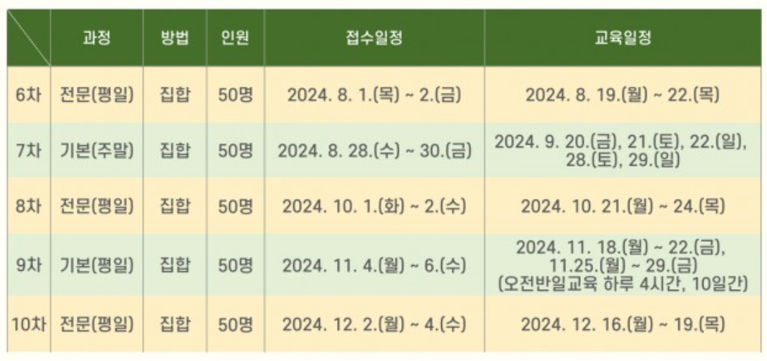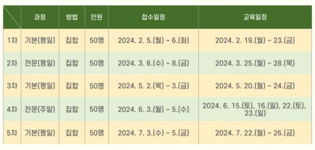 해당 일정은 홈페이지에서 발취한 내용으로 교육기관 사정에 따라 변경될 수 있다.