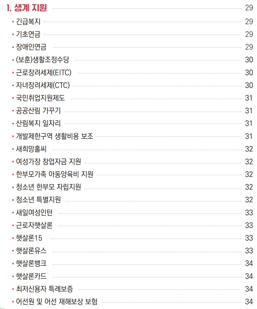 2024년 중앙부처 차상위계층 지원사업 안내 PDF 및 목차