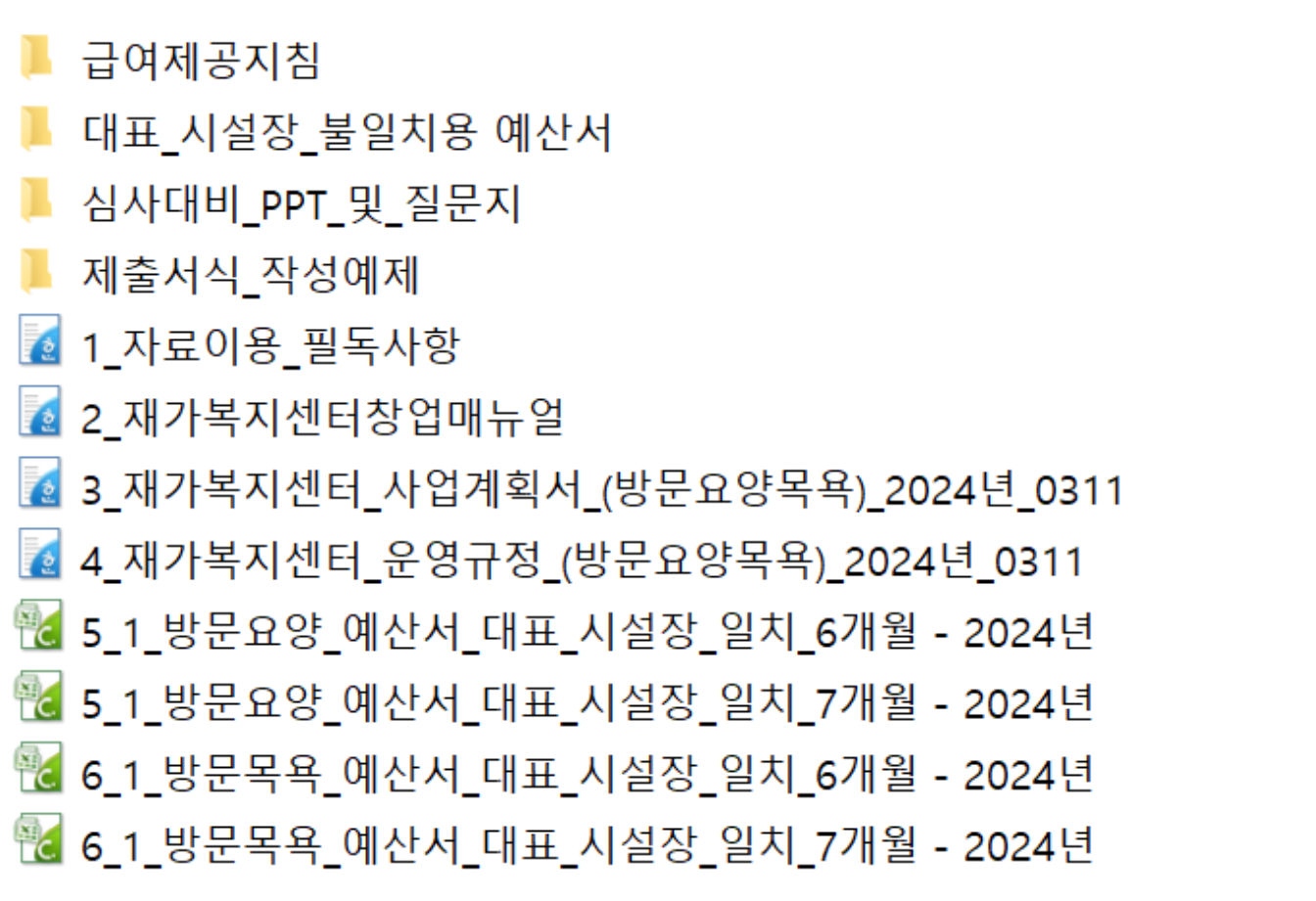 방문요양센터, 방문목욕 사업계획서, 예산서, 운영규정 및 급여제공지침 등 제출 서류 파일 다운로드 받기