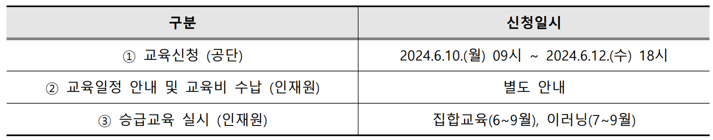 총 40시간 ( 집합교육 16시간(2일) + 이러닝교육 24시간 )