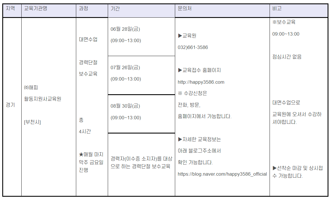 | 2024년 6월 전국 장애인활동지원사 양성 교육 일정 모음 (0) | 2024.06.12 |