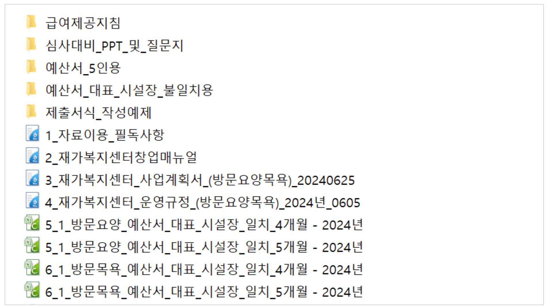 2024년 7월 또는 8월달 방문요양센터 설립을 위한 제출 서류 샘플 모음이다.