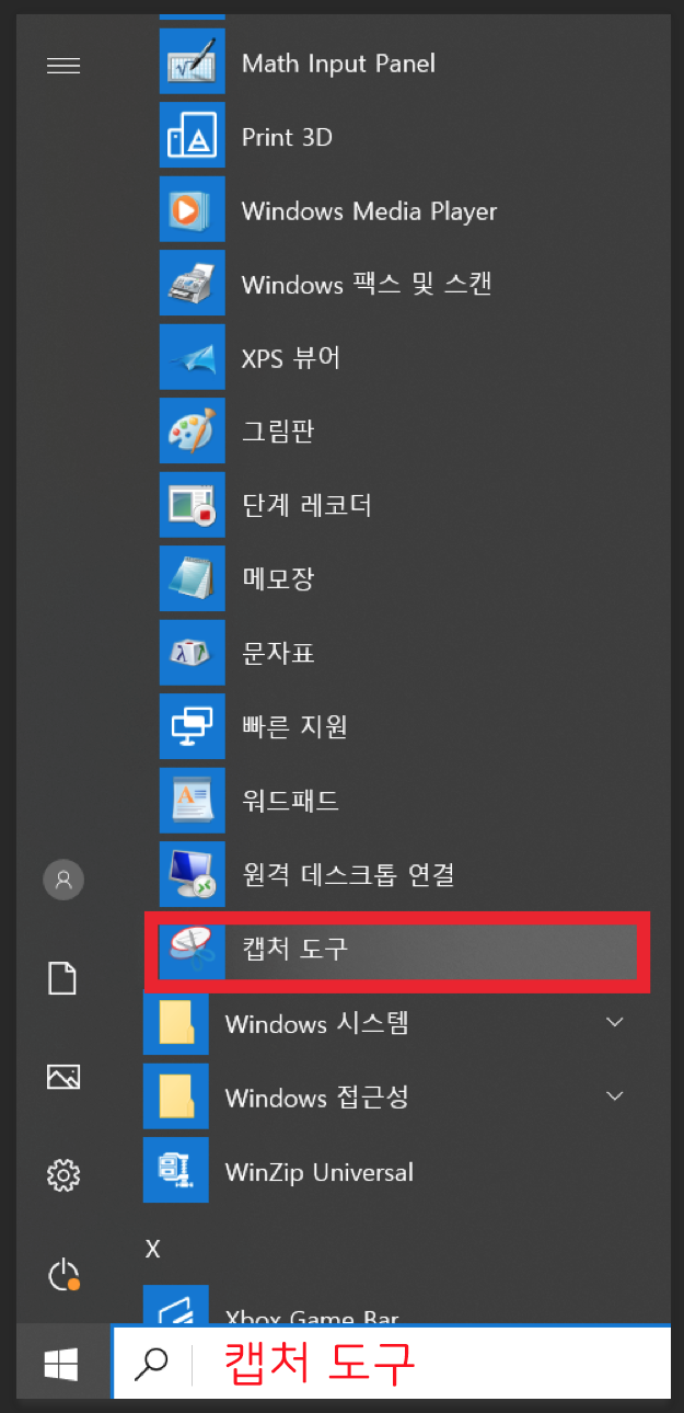 윈도우에는 캡처 도구를 이용해 화며을 쉽게 캡처할 수 있다.