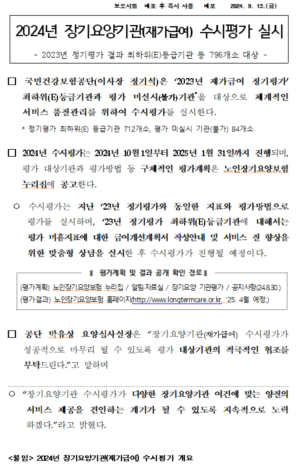 결과에 대해서는 2025년 4월에 노인장기요양보험 홈페이지와 수급자 제공용 장기요양기관 현황을 통해 기관 명단을 공개할 예정이다.