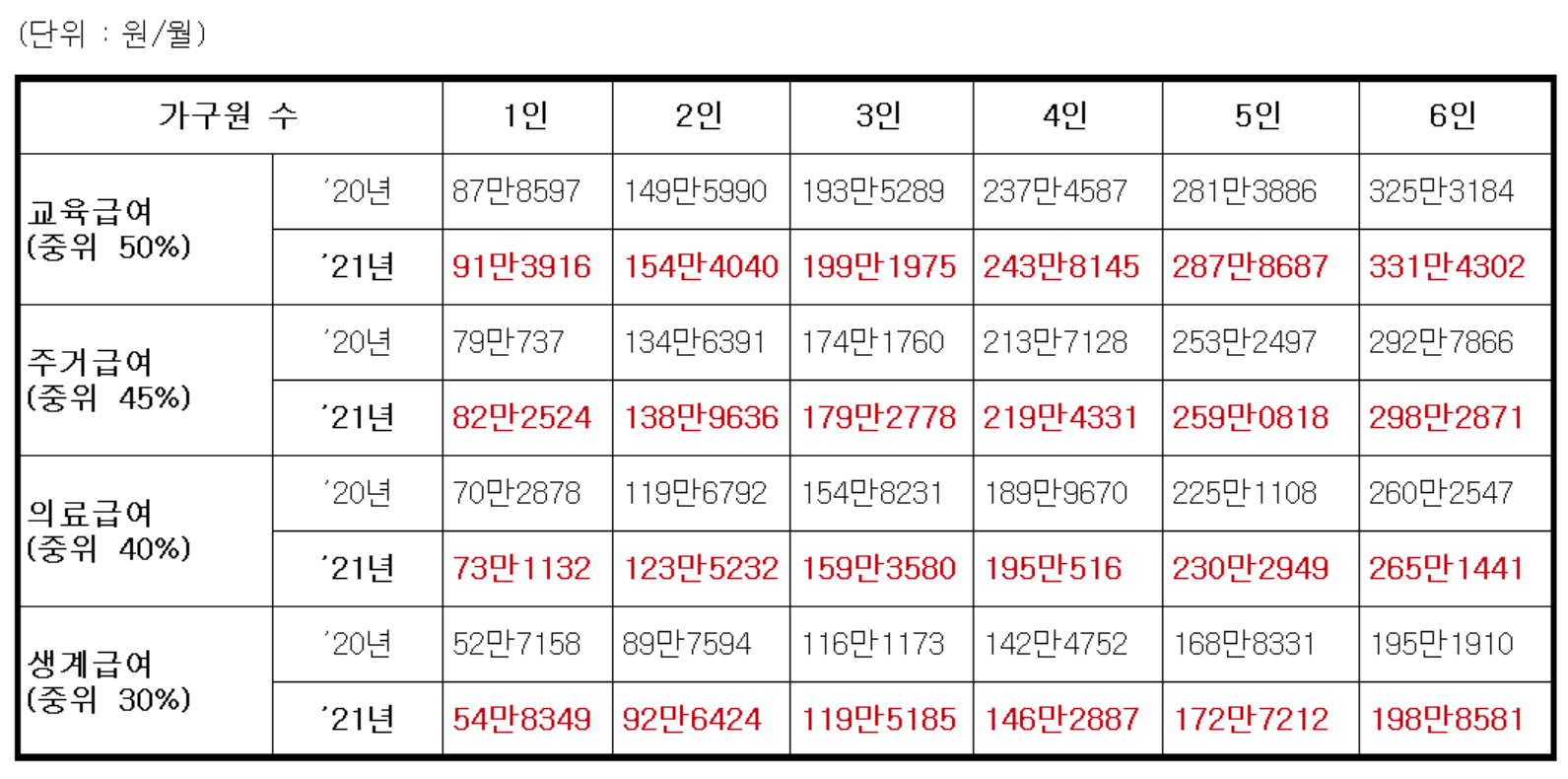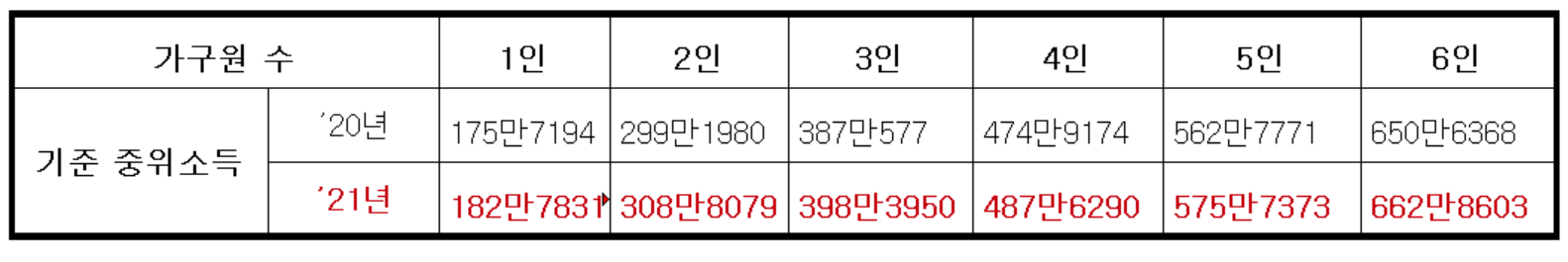 2021년 중위소득표는 이미 발표되었다.