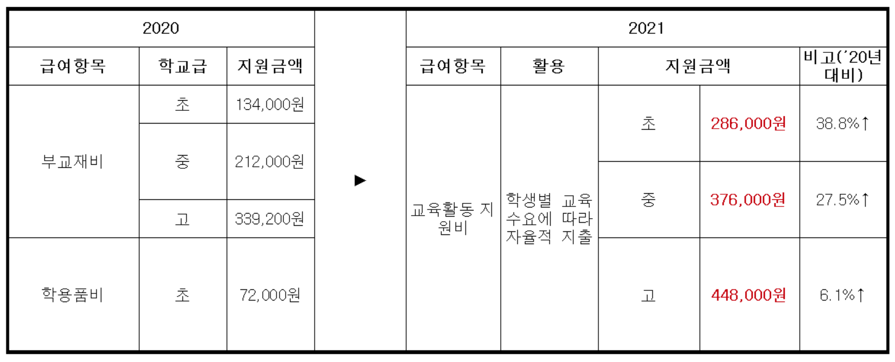 교육급여 지급기준 및 지원내역