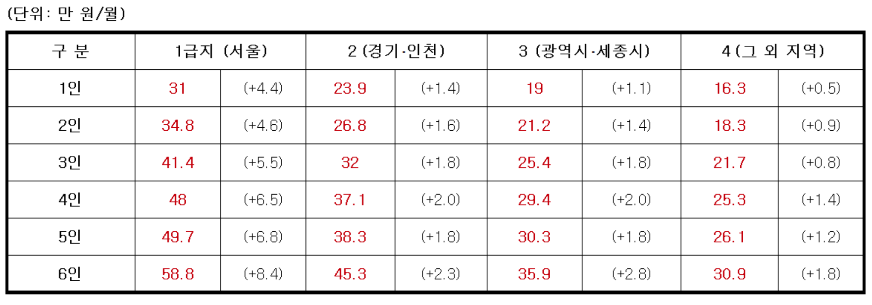 2020년 기준으로 2.68% ( 4인 기준 ) 상승했다.