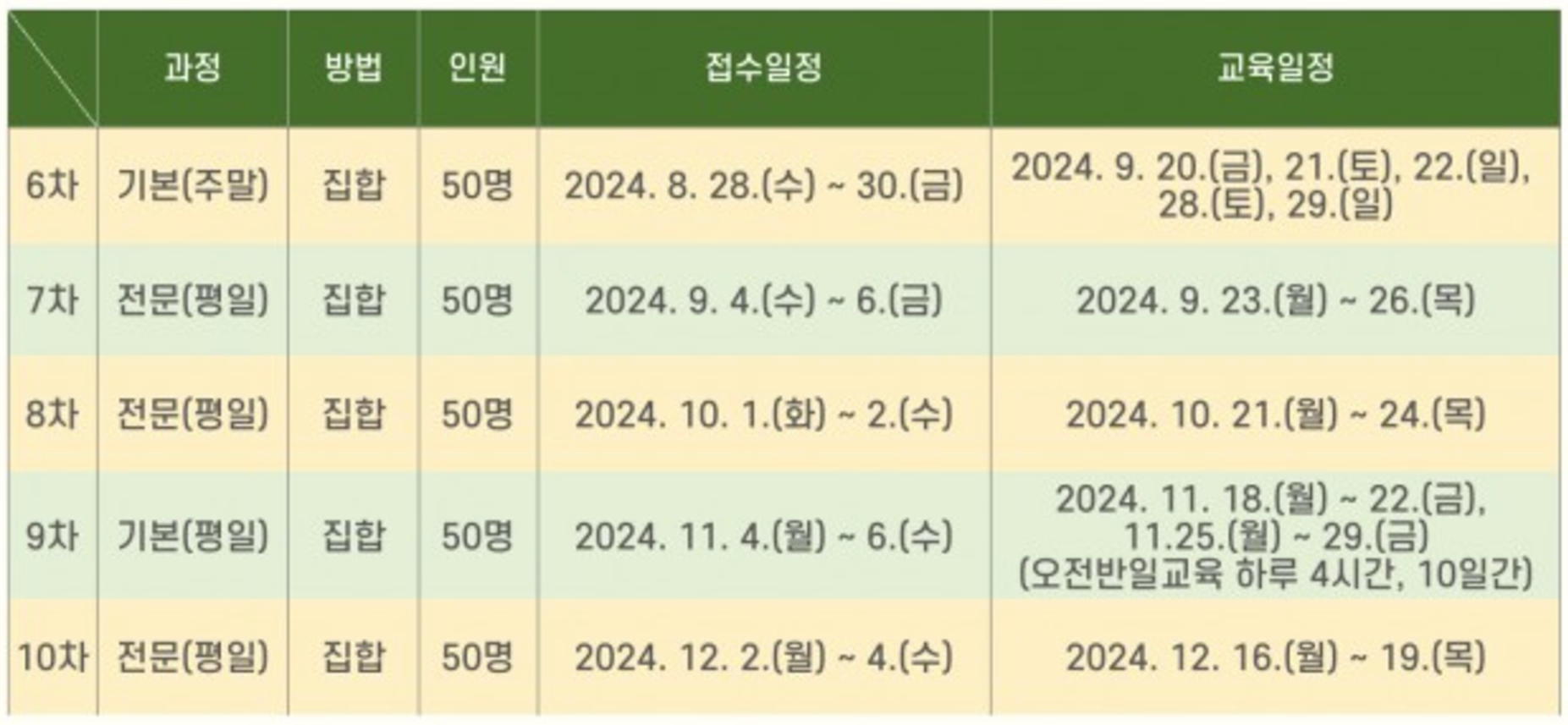 | 회차 | 일반 교육 | 유사경력자 교육 |