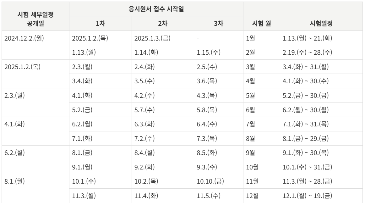 | 2024년 제8, 제9, 제10시험 구간 시 시험 일정 및 응시원서 접수기간 (0) | 2024.08.28 |