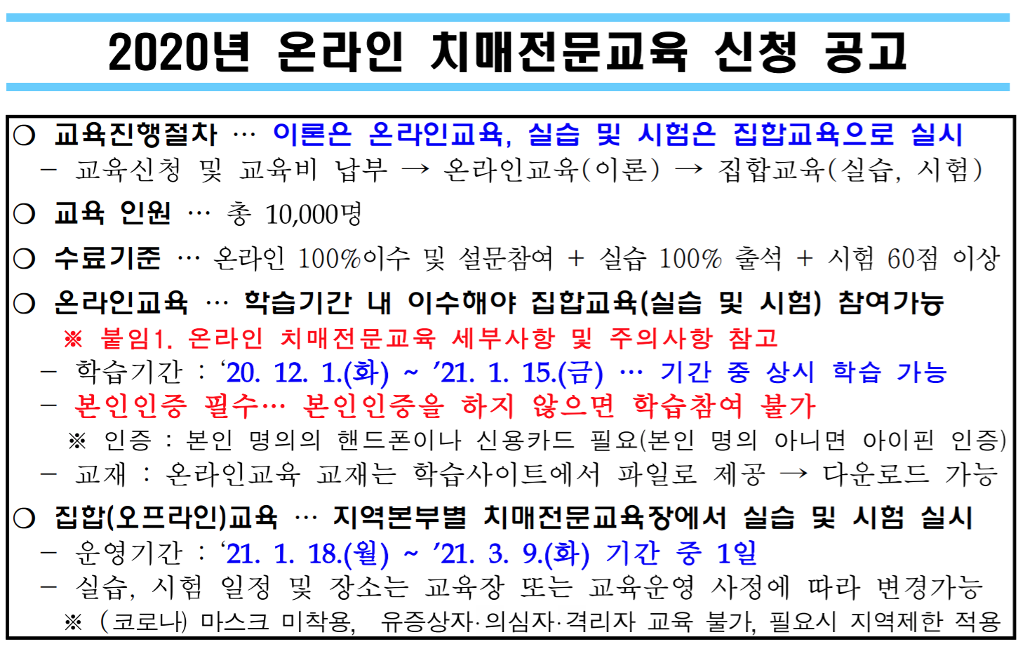 2020년 온라인 치매전문 교육 신청하세요. ( 첨부파일 다운로드 )
