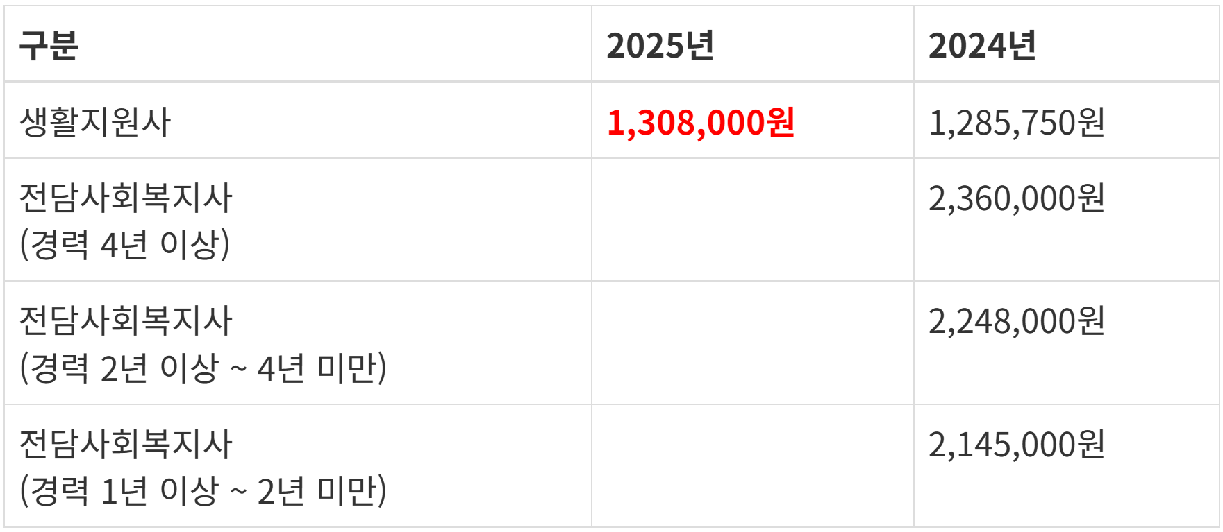 2025년 생활지원사의 기본급은 1,308,000원이다.