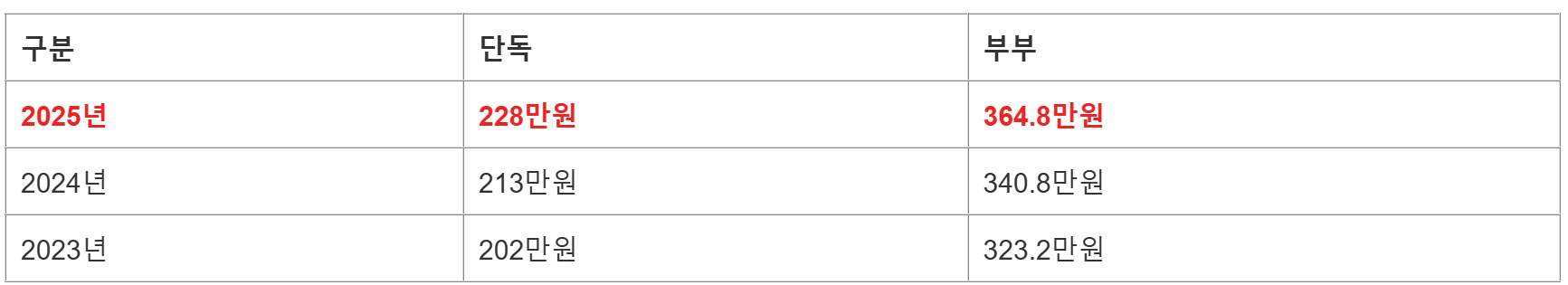 단독가구는 지난해 대비 15만원이 올랐고, 부부가구는 24만원이 올랐다.