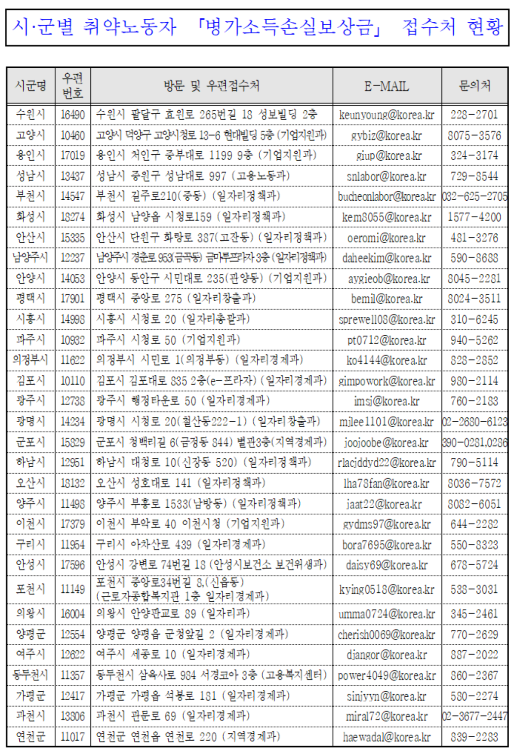 자세한 사항은 경기도 콜센터 및 지역 문의처에 연락을 해 보면 된다.