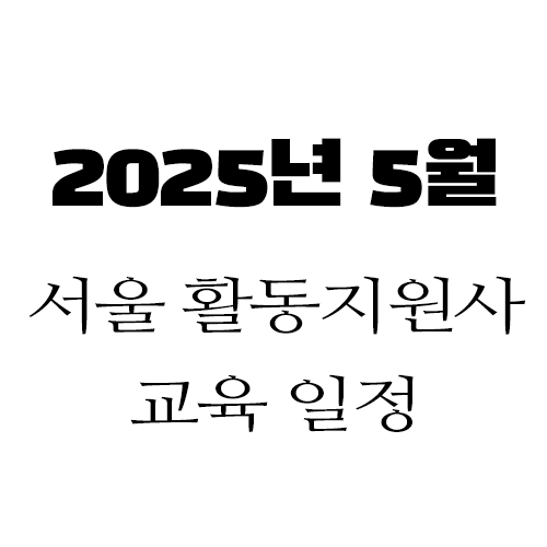 서울지역에 위치한 활동지원사 교육기관의 2025년 5월 교육 일정 모음이다. 교육 일정은 해당 기관 사정에 따라 변경될 수 있다. 장애인활동지원사로 근무를 하기 위해서는 총 40시간의 교육과 10시간의 실습을 받아야 한다.