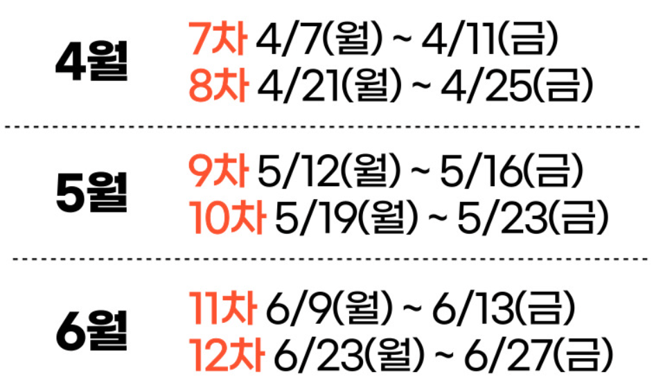 | 10차 | 2025.04.07(월)-04.11(금) |