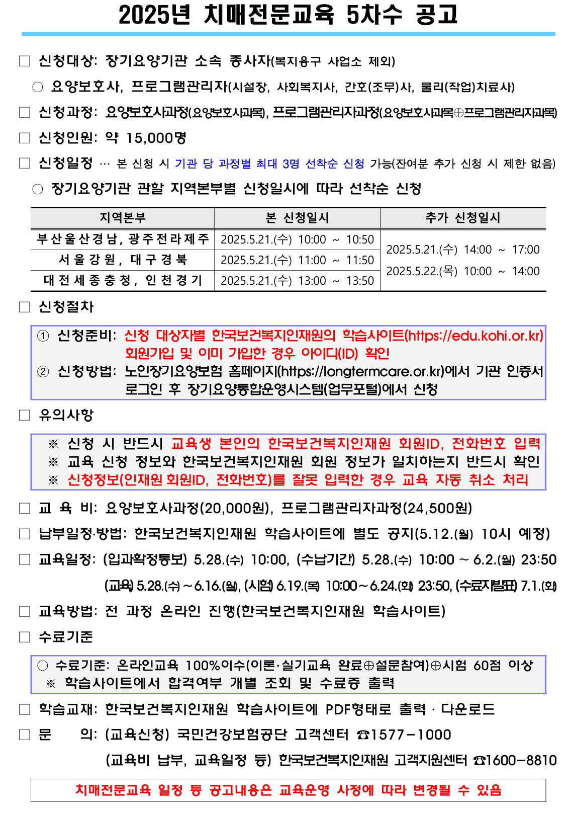 | 2025년 4차수 치매전문교육 일정 및 대상자 신청 (0) | 2025.04.08 |