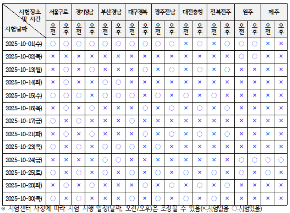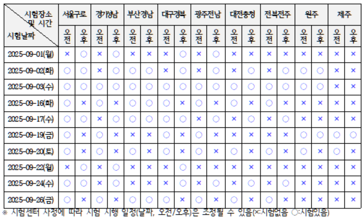 시험일정 | 접수 시작일정 | 시험장소 (시험센터) |