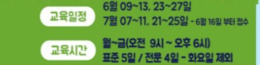 | 전문(32시간) | 6/21(토), 6/28(토), 7/5(토), 7/19(토) | |||