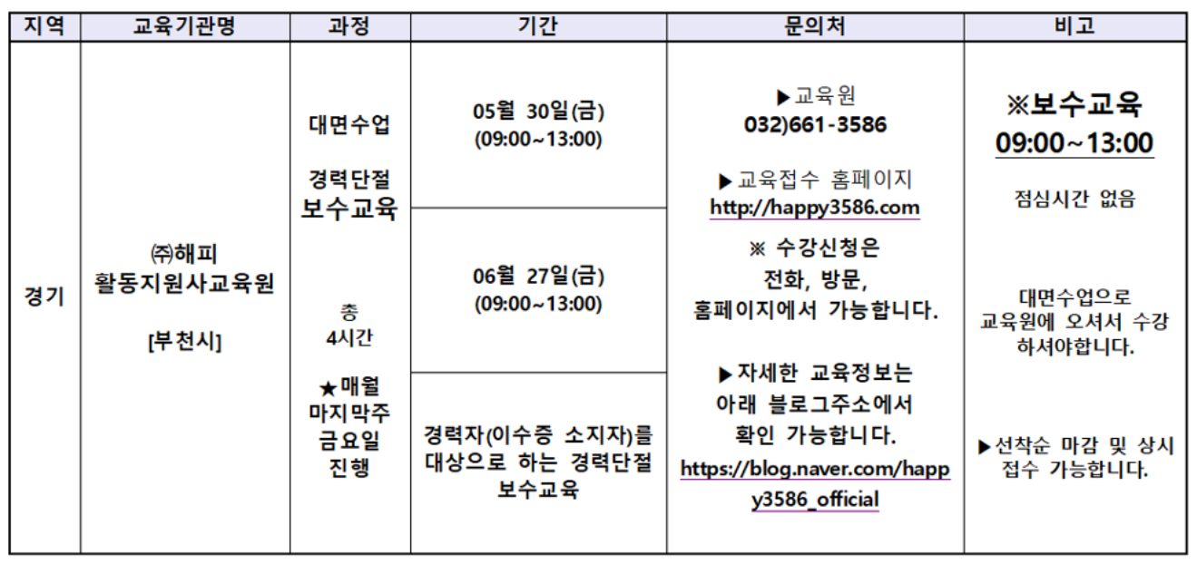 | 2025년 6월 경기 장애인활동지원사 양성 교육 일정 모음 (0) | 2025.05.27 |