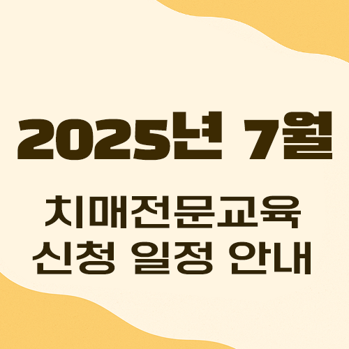 2025년 7월 치매전문교육 제6차수 모집이 공고되었다. 장기요양기관에 소속된 종사자를 대상으로 하며, 복지용구 사업소 종사자는 제외된다. 신청 대상에는 요양보호사뿐만 아니라 시설장, 사회복지사, 간호(조무)사, 물리·작업치료사 등 프로그램관리자도 포함된다.