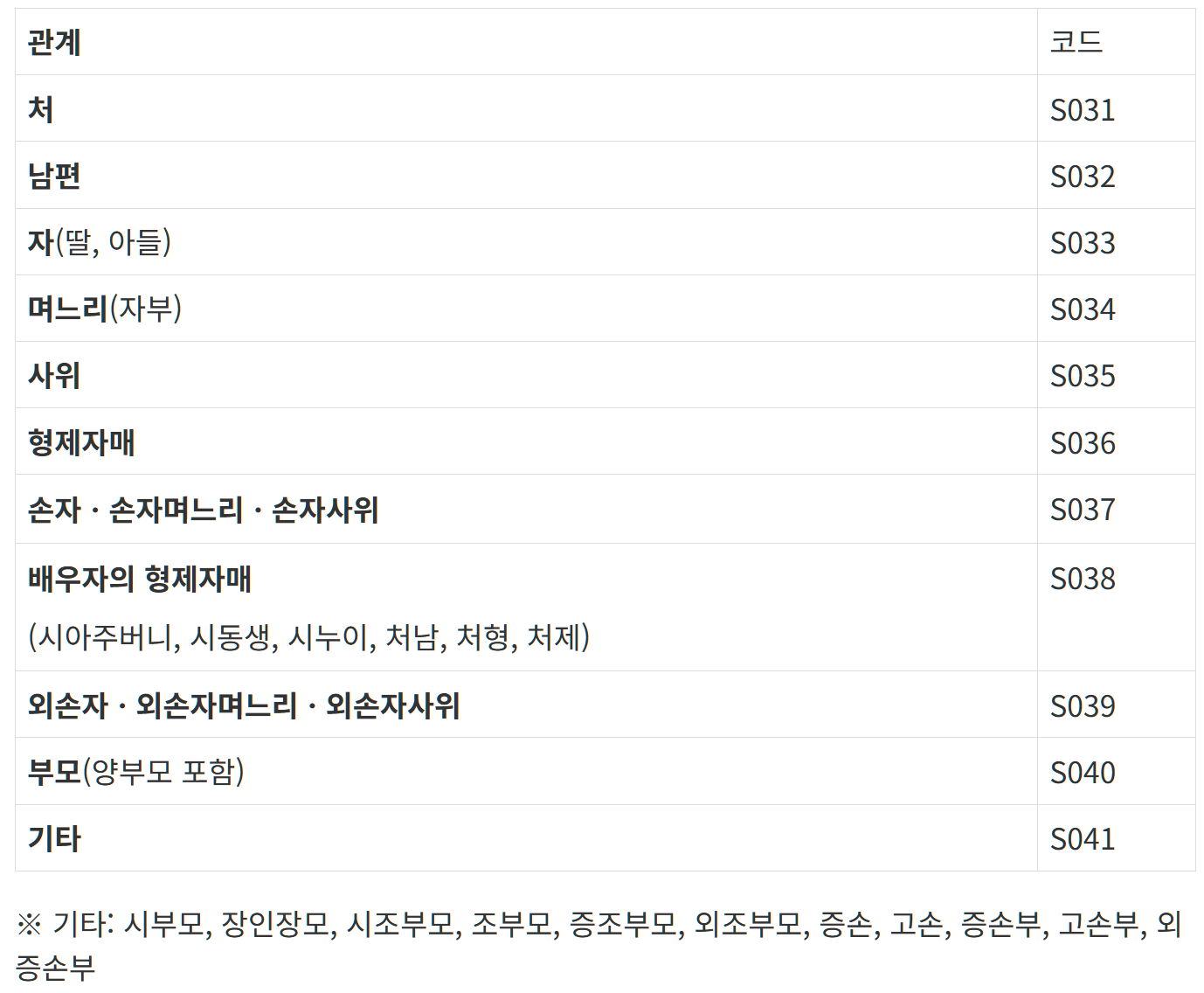 또한, 가족관계이어야 한다. 아래는 가족요양에서의 가족관계이다.